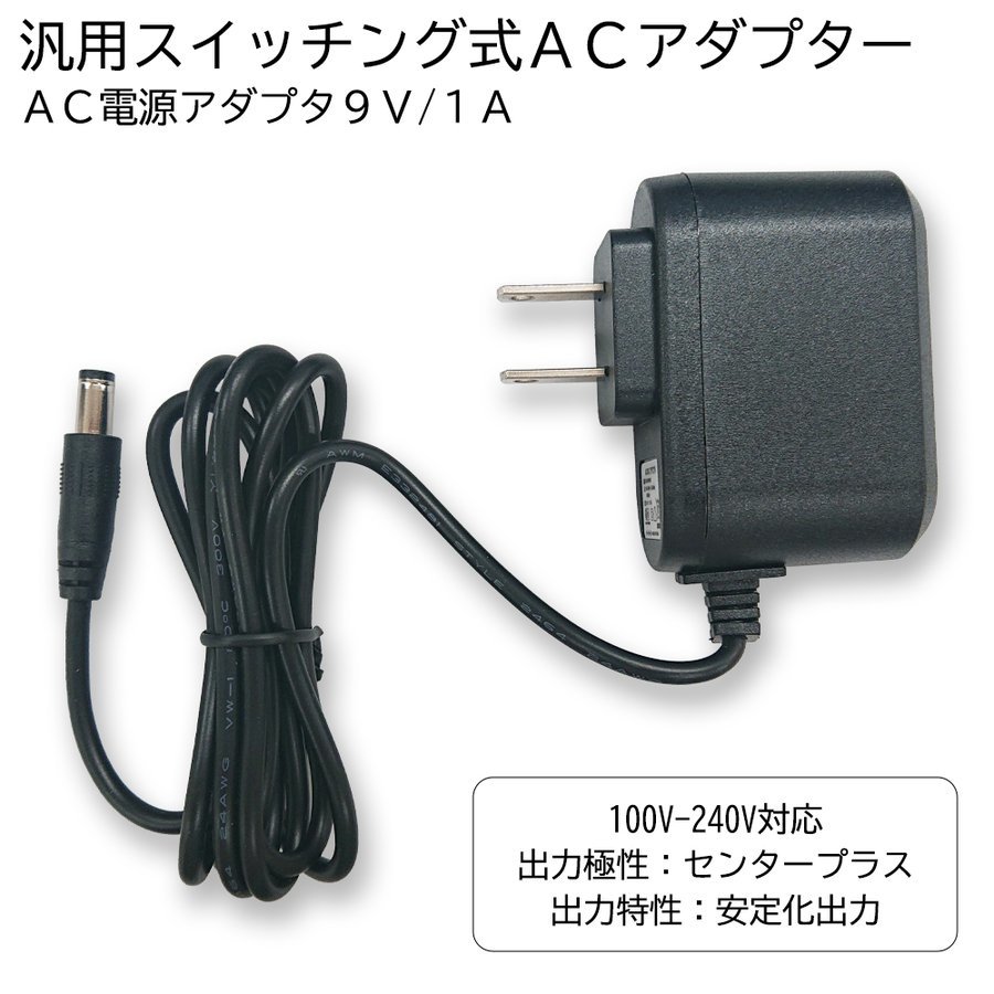 > ACアダプター 9V/1A 最大出力9W スイッチング式 変換コンバーター 出力プラグ外径5.5mm(内径2.1mm) PSE適合 汎用 送料無料