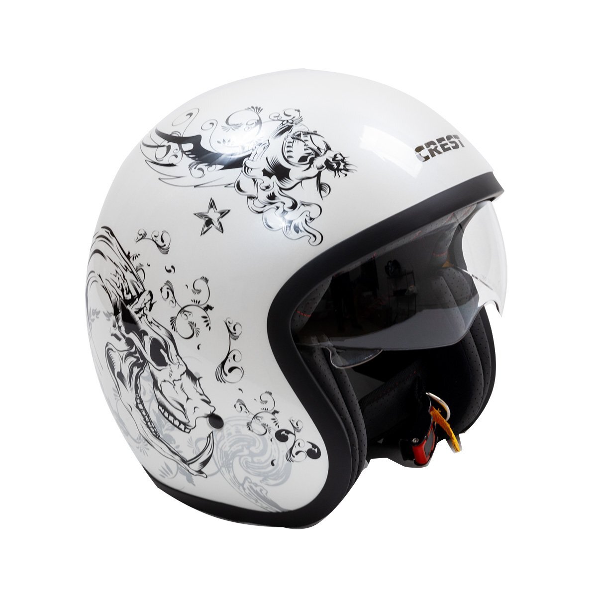 - 【在庫限り】ジェット ヘルメット SG/PSC規格 シールド付き バイク用ヘルメット CHROME-J SKULL かっこいい パールホワイト M~XL選択
