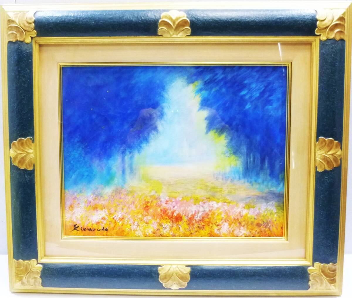 > 《ジャムルK》 kk0329-190◆◆ 宇田喜久子 「森の光 幸せな夢」真作 油彩画 6号 額装 ゴールド系額