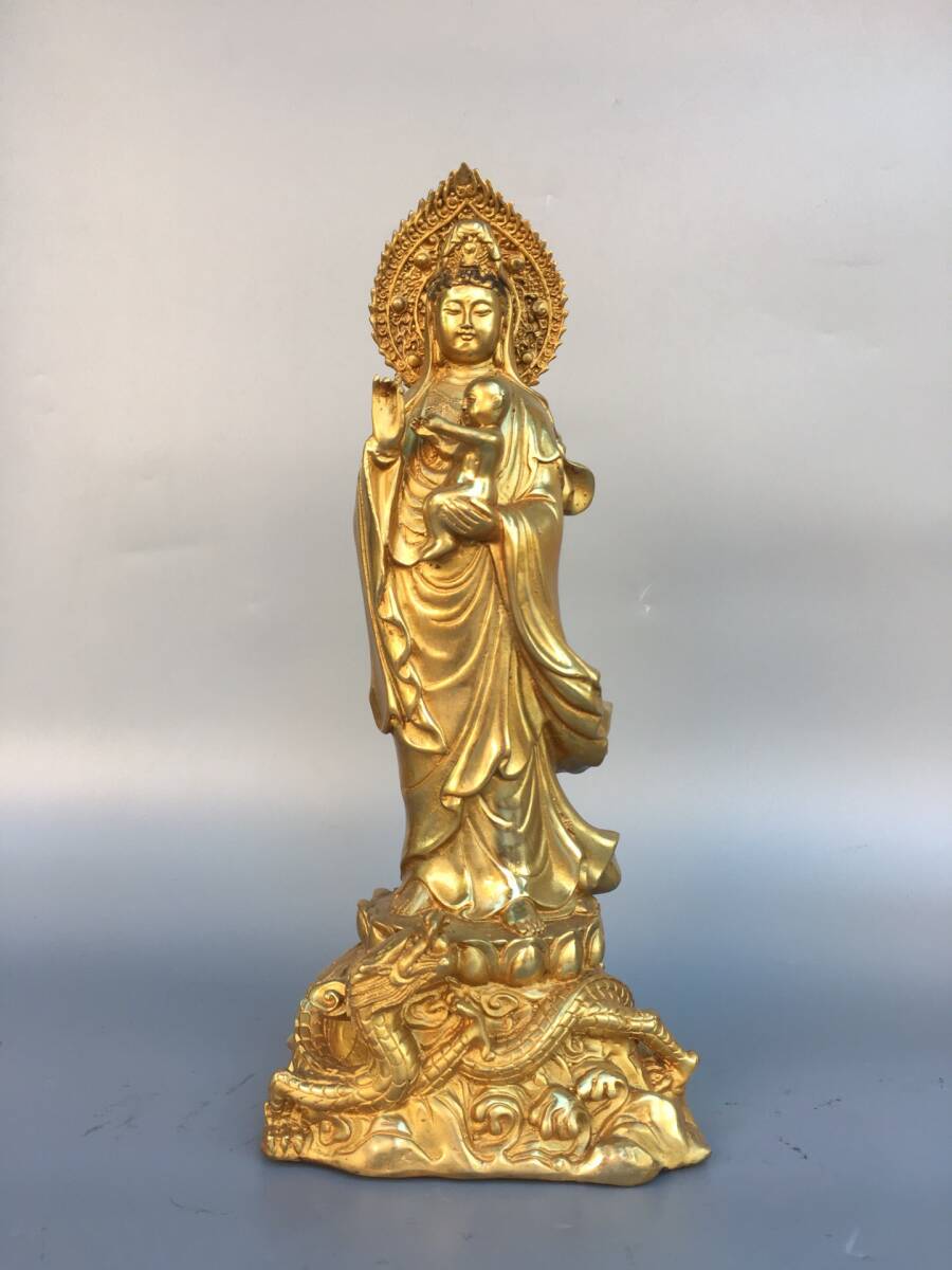 - 【超珍館蔵】銅製 塗金 送子觀音像 置物 古賞物 古美術品 稀少珍蔵品
