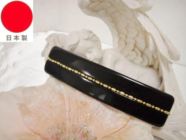 - ♪ 新品 バレッタ 日本製『高品質/アセチ/ロングサイズ/レクタングル/GOLDチェーンライン/ブラック/黒』♪