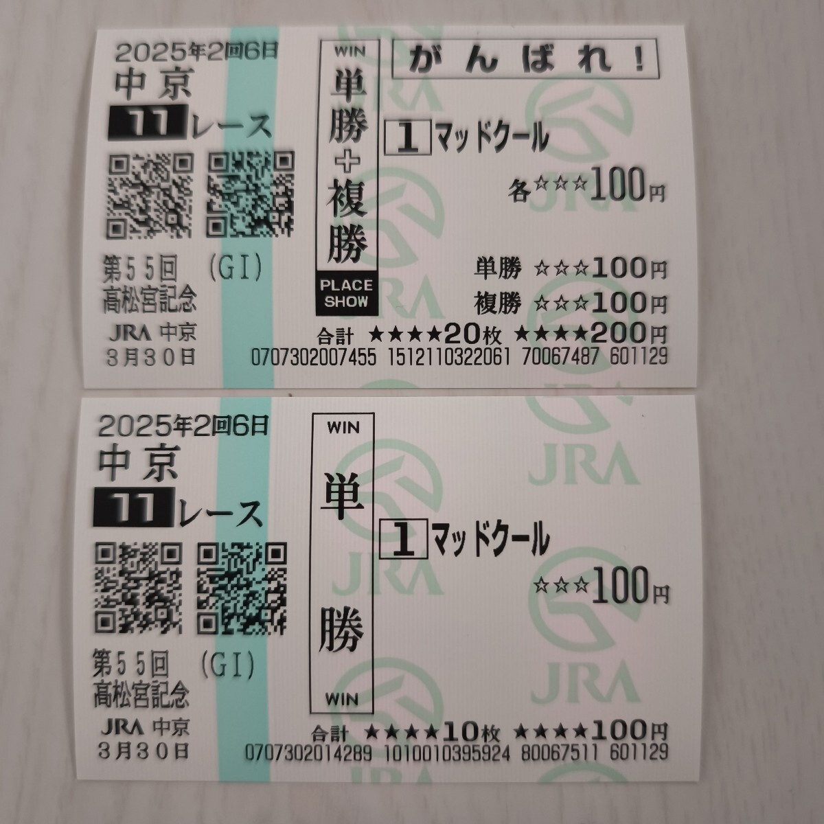 - マッドクール 高松宮記念 現地単勝馬券& がんばれ馬券