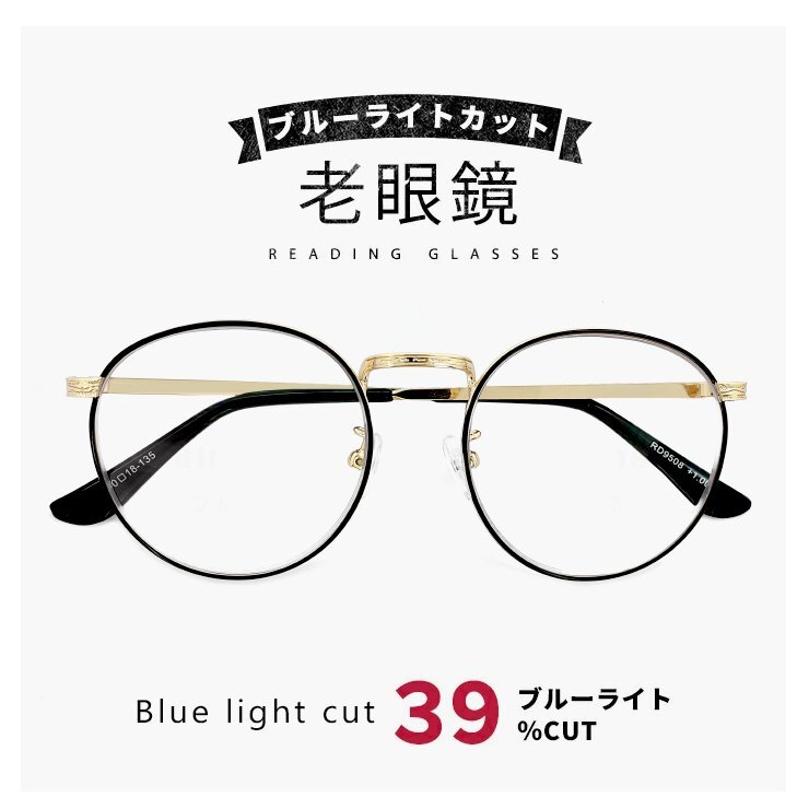 - 新品 レディース 老眼鏡 rd9508 +1.00 ブルーライトカット 30代からの おしゃれ 老眼 小さめ ブルーライト 39%カット PC眼鏡 ラウンド