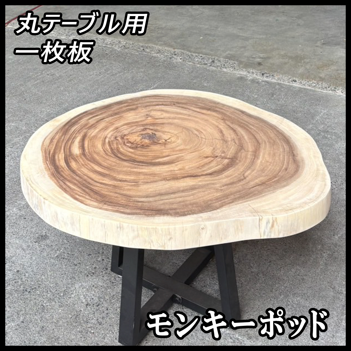 - [オータムセール開催]■未使用☆モンキーポッド☆無塗装■【62x770x875mm】一枚板 丸テーブル 乾燥材 輪切り 天板 家具 インテリア[No.125]