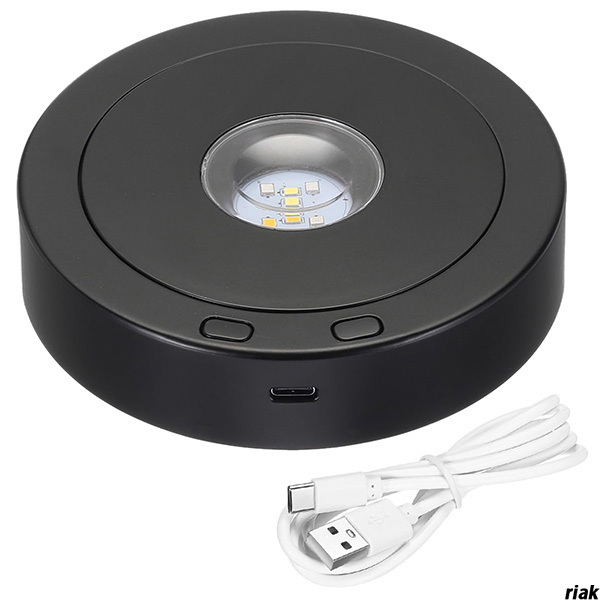 - 【インテリアやディスプレイに最適、寝室、カフェ、バーなどでも活用できる】回転ディスプレイスタンド 360度回転 LEDライトベース 黒