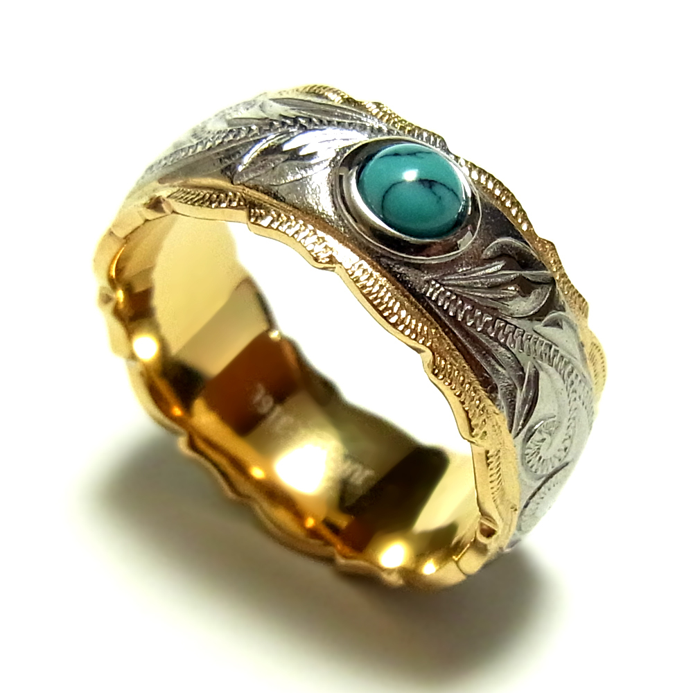 > ★人気★ハワイアンジュエリー★金属アレルギー&温泉&海水浴ご使用OK★ステンレスリング★ゴールド&シルバー&ターコイズ&ハワイアン模様★