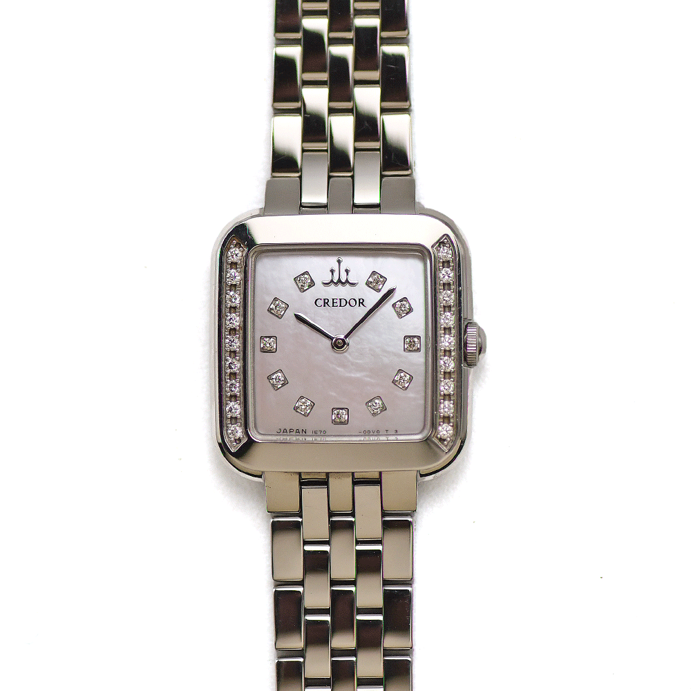 > セイコー SEIKO クレドール シグノ GSTE875 クォーツ 1E70-0CR0 ダイヤ入り ピンクシェル文字盤 レディース 腕時計 研磨仕上げ済み 中古