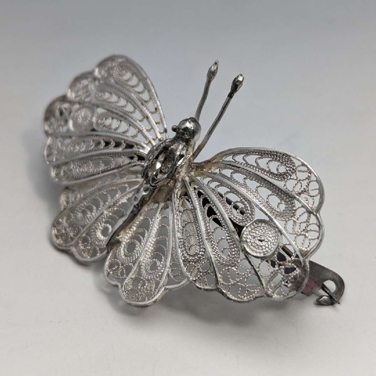 「フィリグリー」と呼ばれる細い銀線細工のバタフライ型ブローチです。