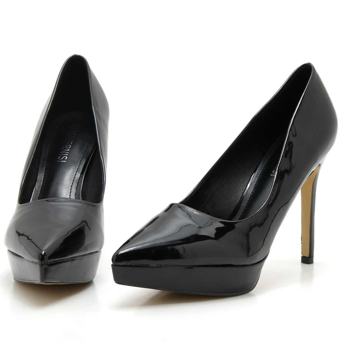 - 新品 大きいサイズ パンプス ブラック 26.5cm 131400-43 エナメル調 前厚底ストーム ハイヒール