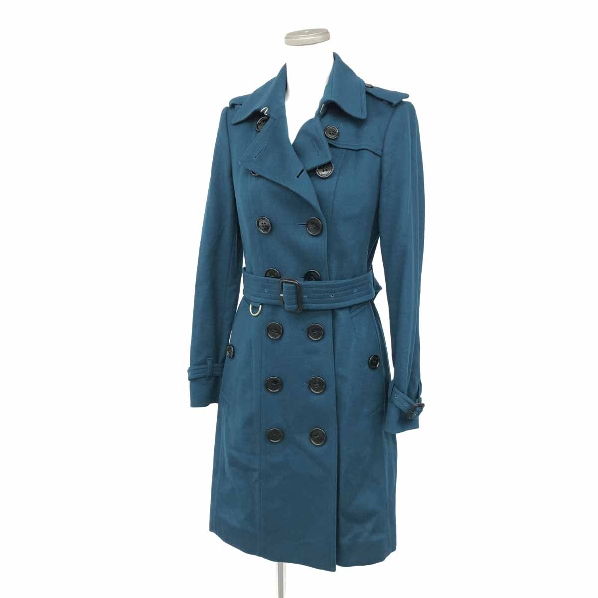 > 美品◆BURBERRY LONDON バーバリーロンドン ロングコート サイズI38◆ ブルー カシミヤ100% レディース アウター サンドリンガム