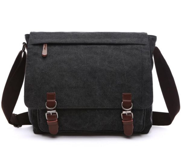 - 新入荷*ショルダーバッグ メッセンジャーバッグ 上質キャンバス 帆布 男女兼用 斜めがけ 自転車鞄かばん 通学通勤 旅行出張 A4サイズ*黒
