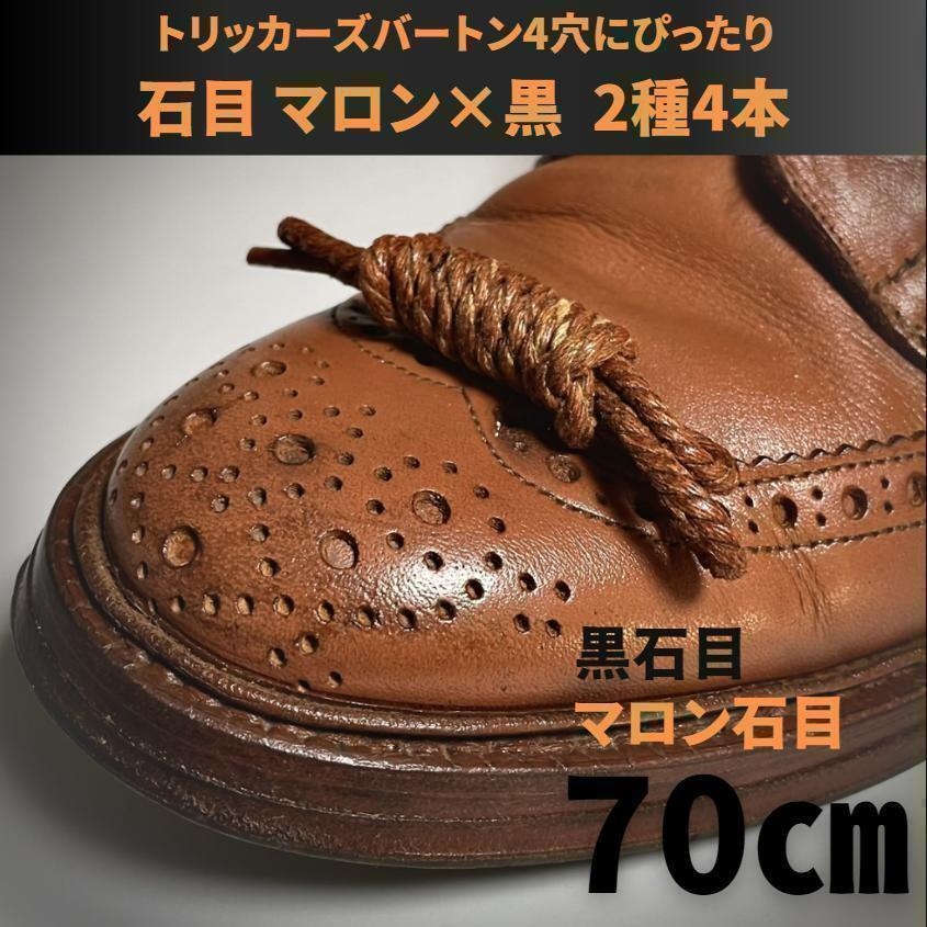 - 公式サイズ準拠 靴紐 70㎝2色4本セット 石目 マロン&黒 伝統英靴 古着 メンズ レディース ブラック