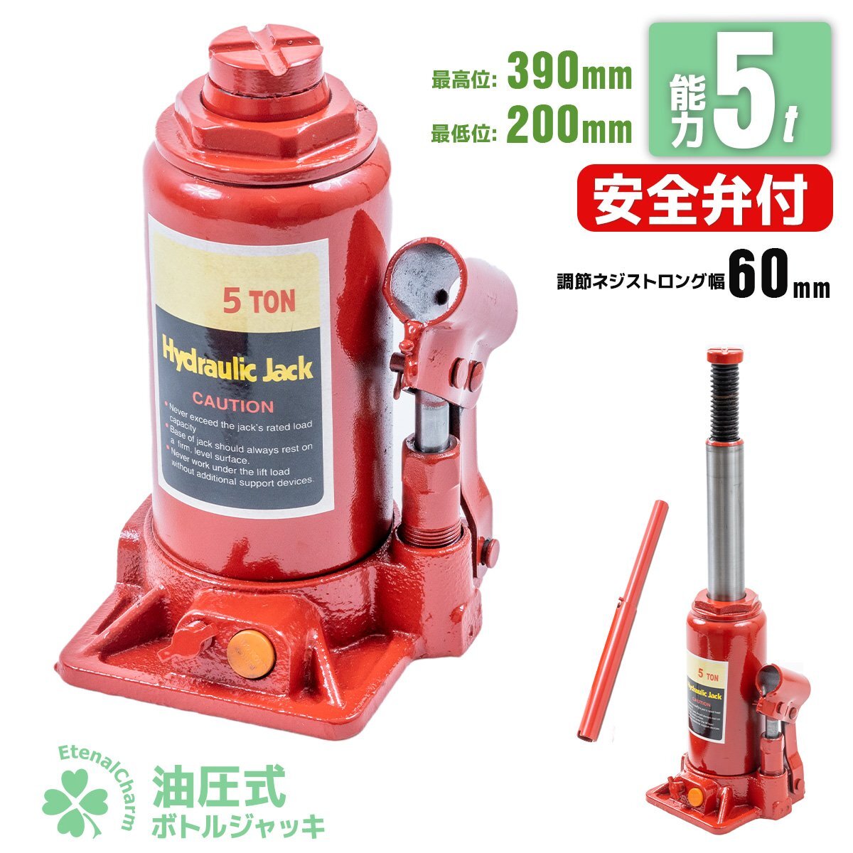 - ■送料無料■安全弁付 5t 油圧式 ボトルジャッキ 標準型 ダルマジャッキ タイヤ オイル交換 建築 土木 自動車整備 機器設置