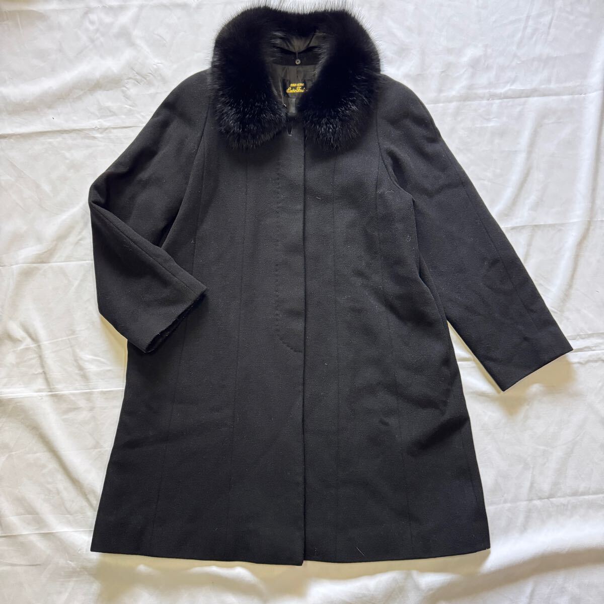 - HIGH SENSE Ladies fashion カシミヤ混 ブルーフォックス ファー付き ロングコート 黒 M
