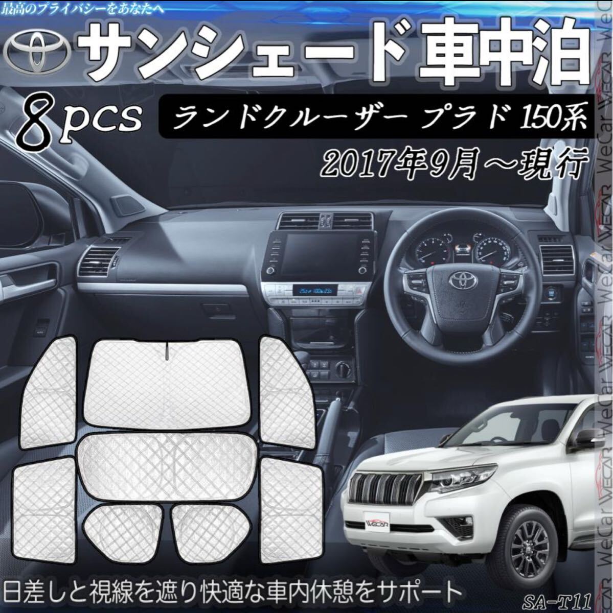 > ランドクルーザー プラド 150系 専用 サンシェード 全窓対応 車中泊 サイドサンシェード 遮光シェード UVカット 日除け 全窓セット