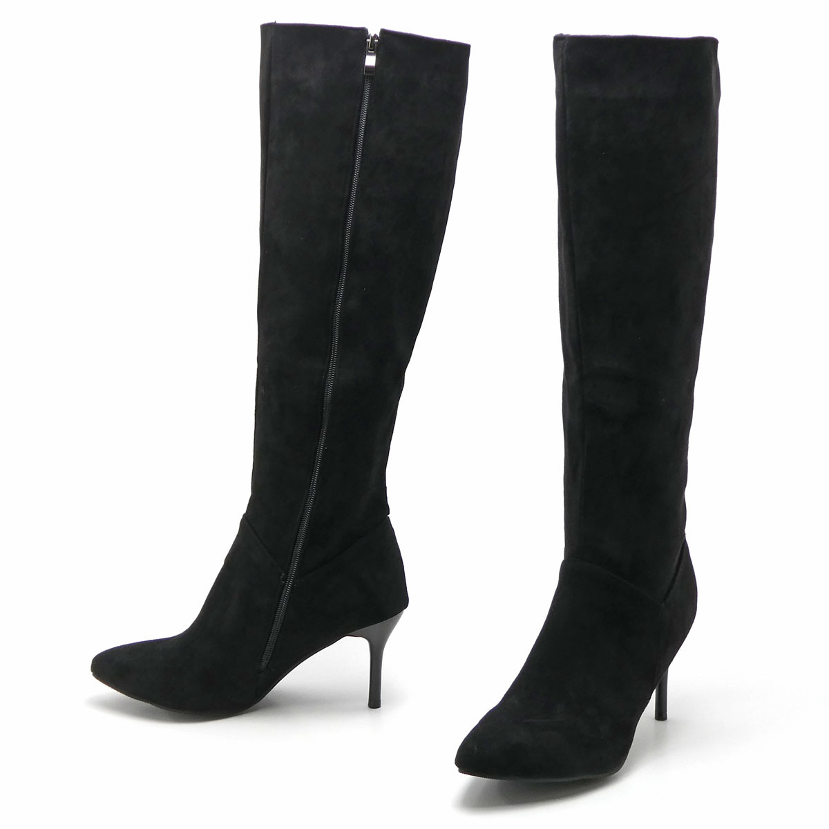 - 新品 大きいサイズ ロングブーツ ブラック 27.5cm 137317-45 スエード調 ハイヒール