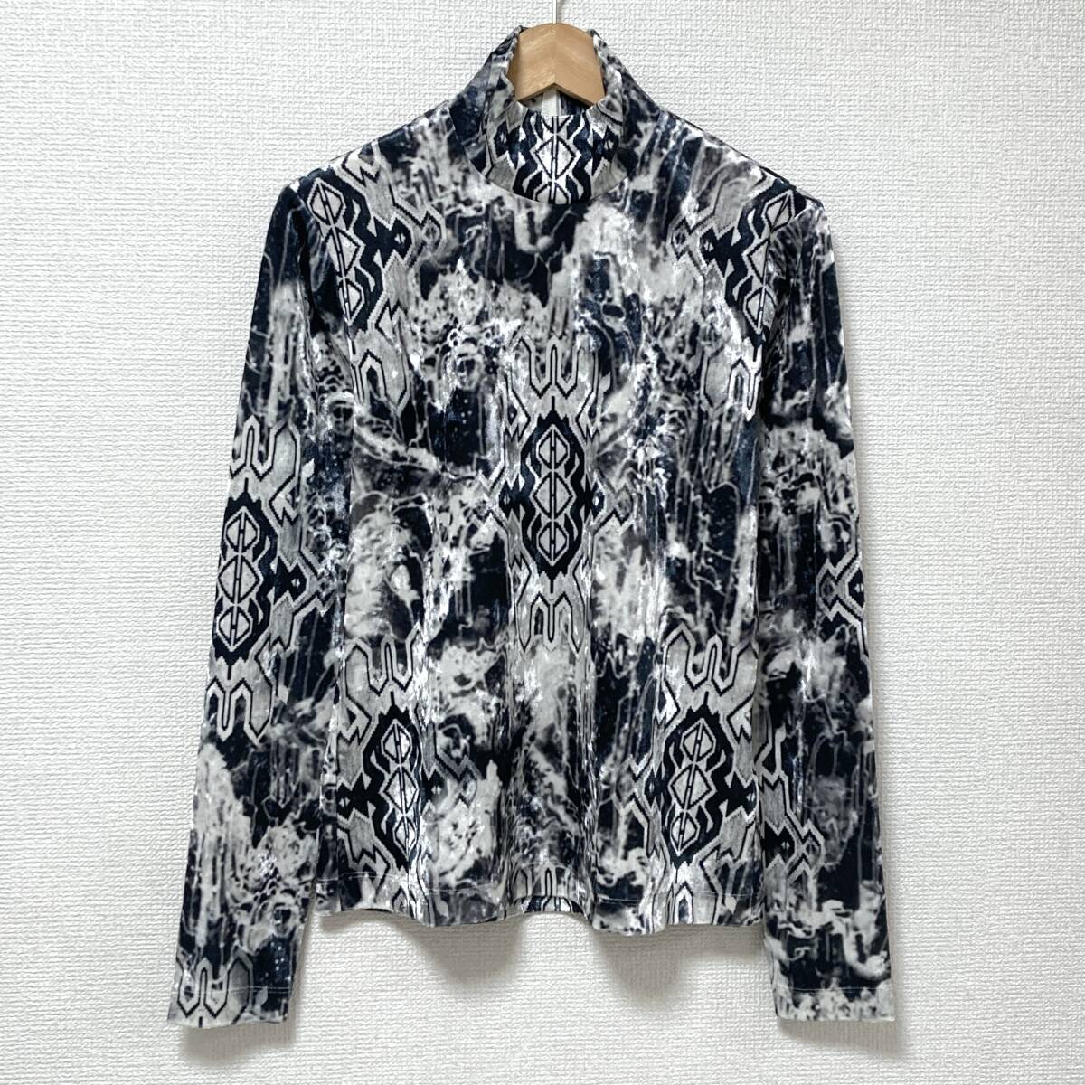 > VIVIENNE TAM velours 民族 総柄 ベロア ハイネック 長袖 カットソー 40サイズ ヴィヴィアンタム ブラウス ベルベット archive 5020236