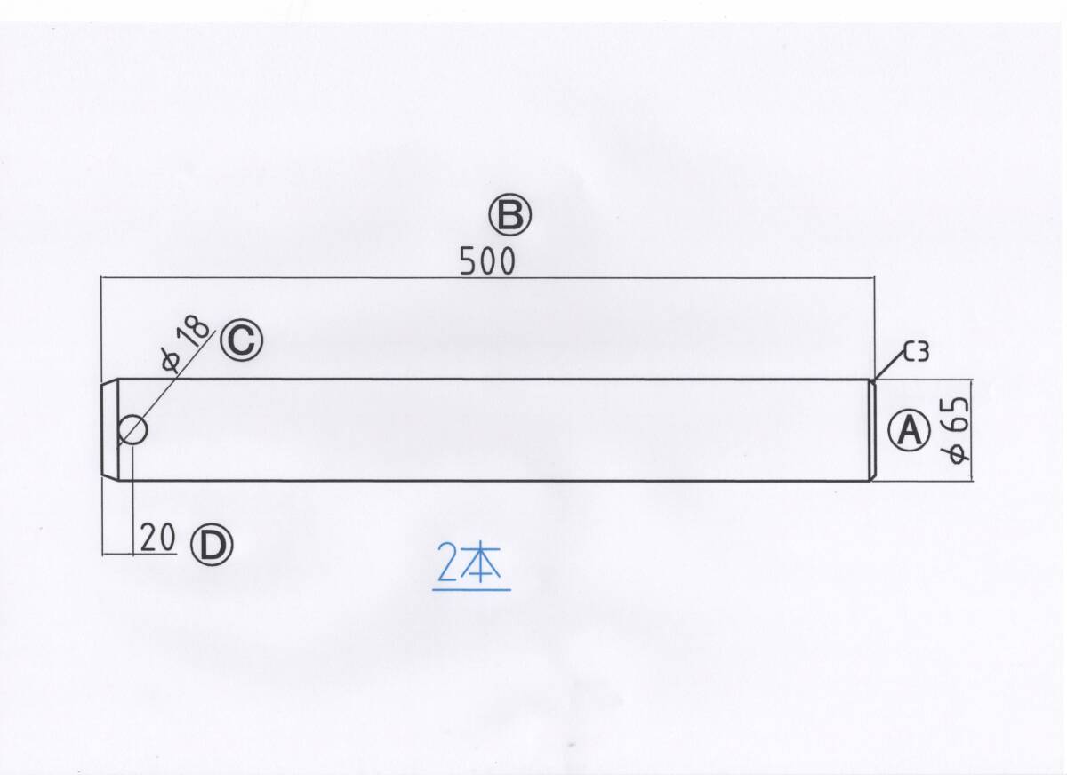 - NO 2015 Φ65用 全長500mm バケットピン 2本1セット 重機用