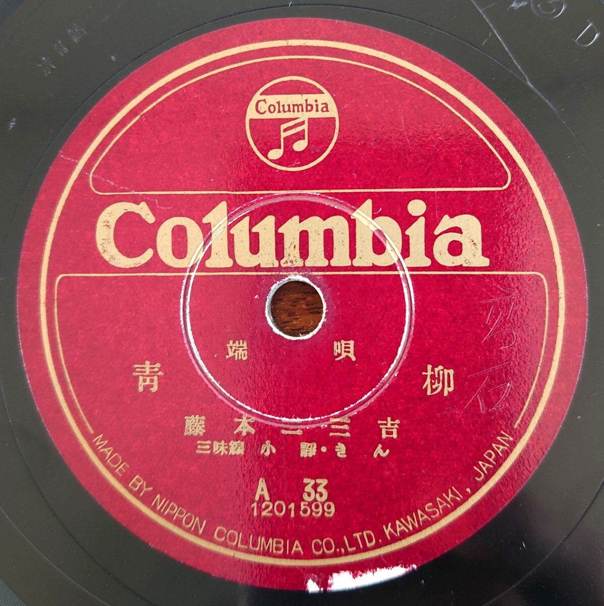 - 【SP盤レコード】Columbia A33 端唄/青柳/夕暮/藤本二三吉