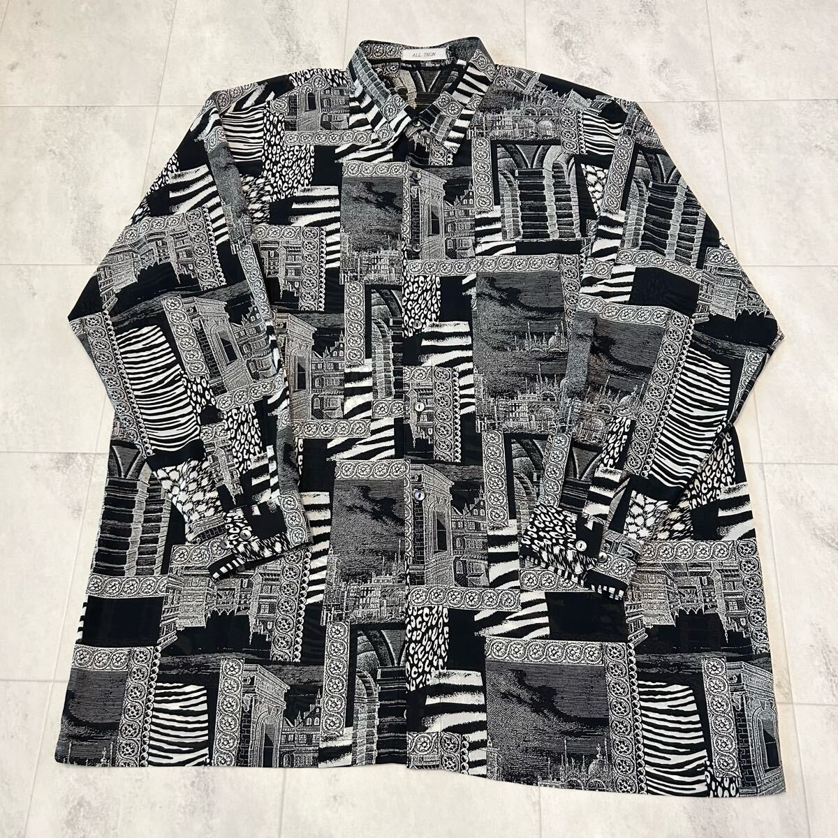 > ALL TRON 総柄 柄シャツ レトロ アート ビンテージ 長袖シャツ ポリエステル100% sizeLL