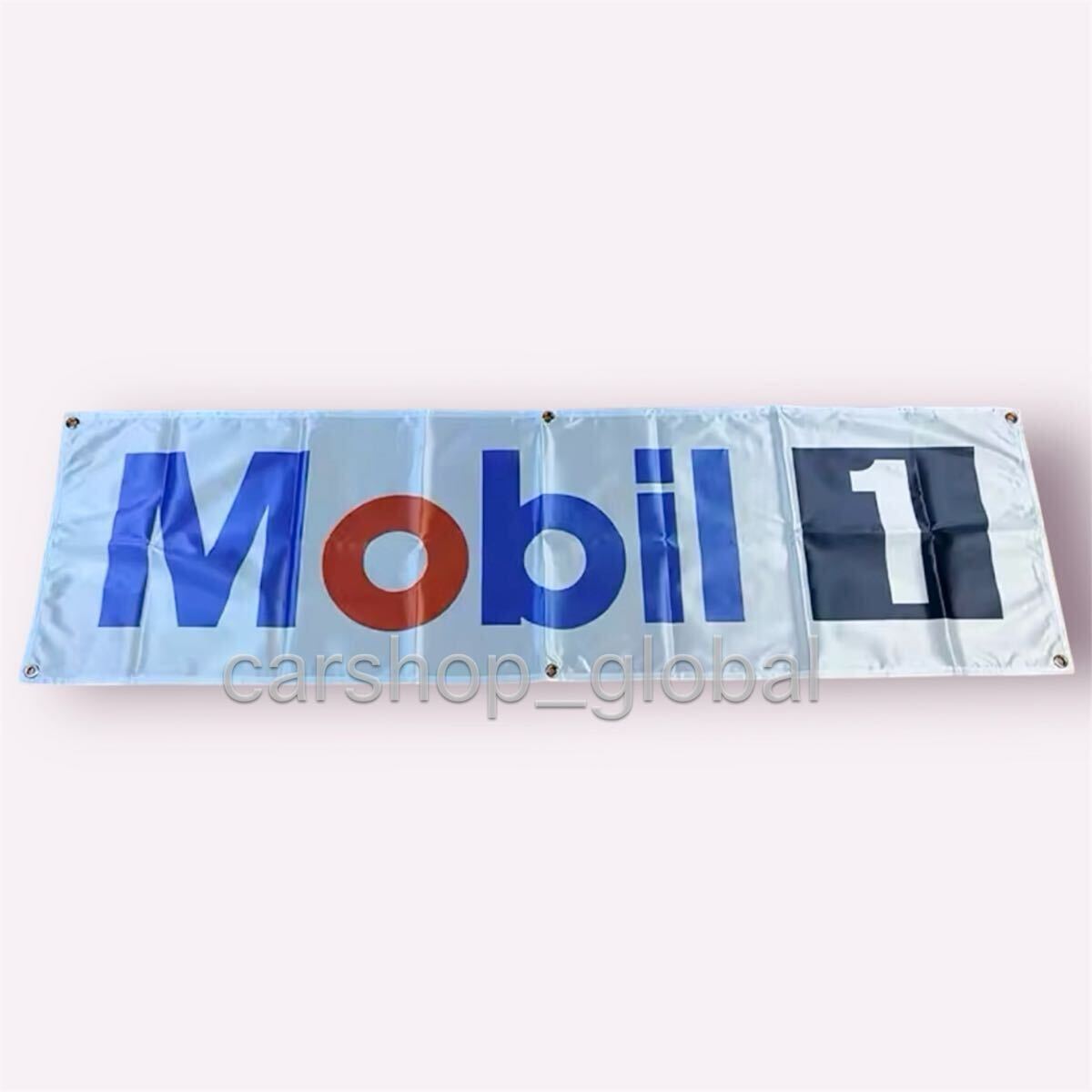 - Mobil 1 モービル バナー ホワイト フラッグ 旗 ガレージ 部屋 150cm×45cm 長方形特大サイズ 6つバックル付 トヨタ/日産/ホンダ/AMG等