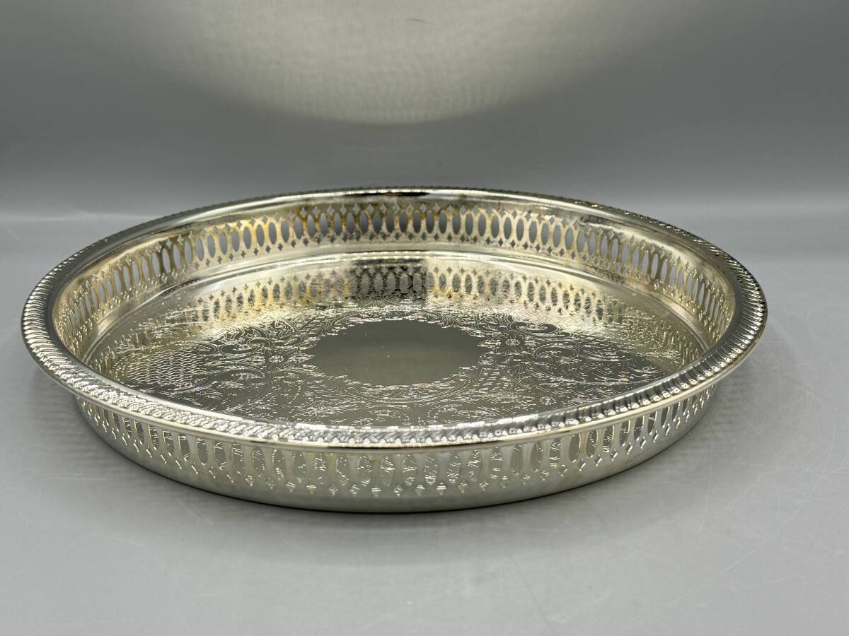 - 英国 シルバー P 円形 シルバープレート 銀P お盆 トレー トレイ 銀メッキ ビンテージ (A)