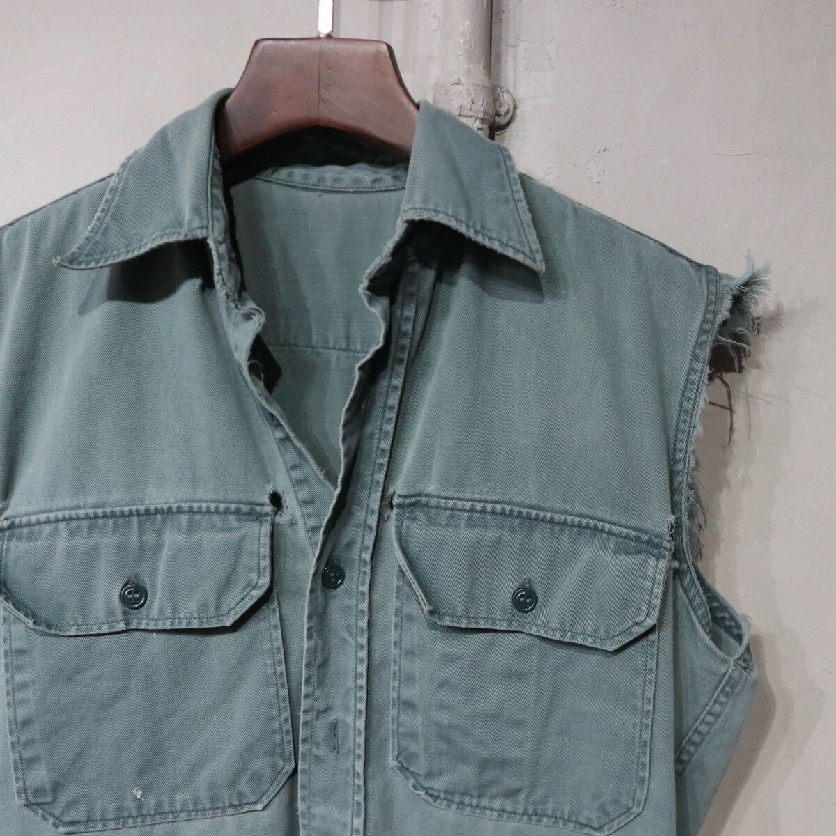 - 【即決】カットオフ ベスト ワーク ミリタリー オリーブ グリーン BORO ボロ 古着