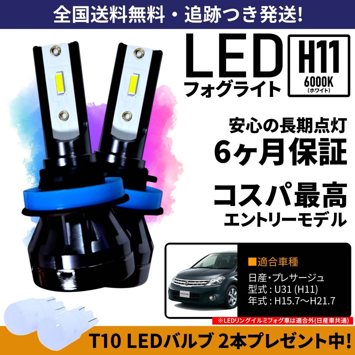 - 【送料無料】日産 プレサージュ U31 LED フォグライト フォグランプ H11 ホワイト 6000K 保証付き