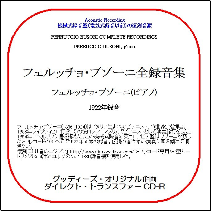 - フェルッチョ・ブゾーニ全録音集/フェルッチョ・ブゾーニ(ピアノ)/送料無料/ダイレクト・トランスファー CD-R