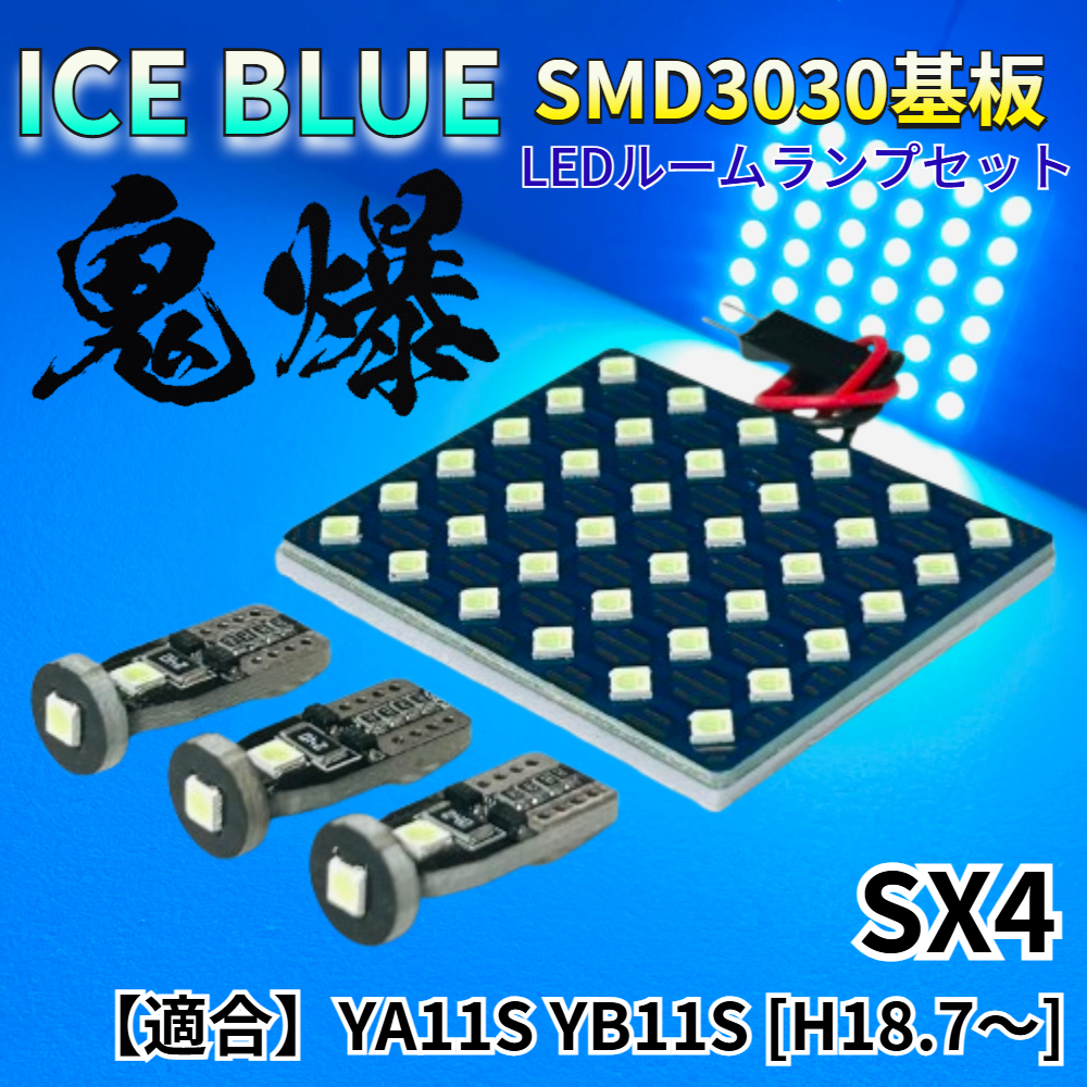 > 【アイスブルー】SX4 YA11S YB11S [H18.7~] 鬼爆基板 3030SMD LED ルームランプ セット 車内灯 室内灯 パーツ アクセサリ