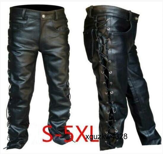 - レザーパンツ メンズ 革パン バイクパンツ 革パンツ ロングパンツ モーターパンツ ライダースパンツ 防風 防寒 防水 S-5XL 黒