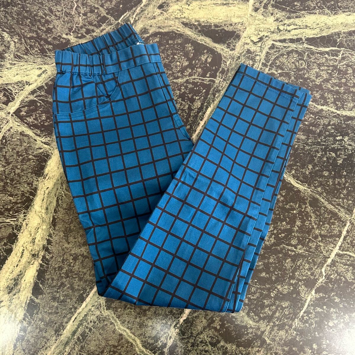 - 【美品】GU★ジーユー スキニーレギンスパンツ Sサイズ チェック柄 青 スリムパンツ レディース ストレッチパンツ
