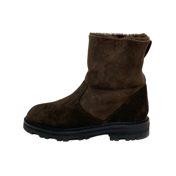 - マノロブラニク MANOLO BLAHNIK ショートブーツ 36 Tomosa スエード アンクルブーツ ムートンライニング ムートン ダークブラウン 靴