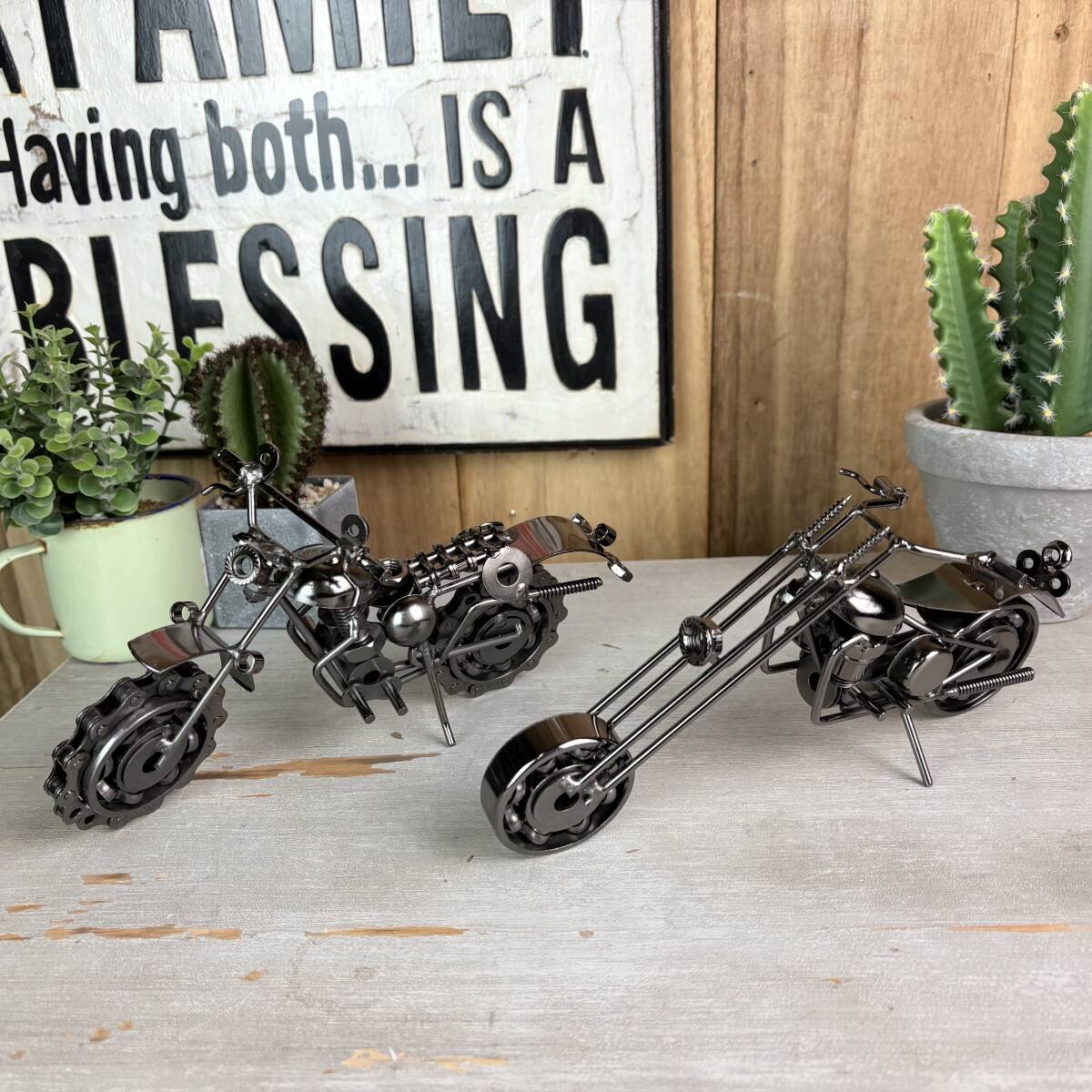 - 送料無料、アメリカンインテリア雑貨ブリキスチールバイク2点セット置物コレクションディスプレイミニチュアフィギュア