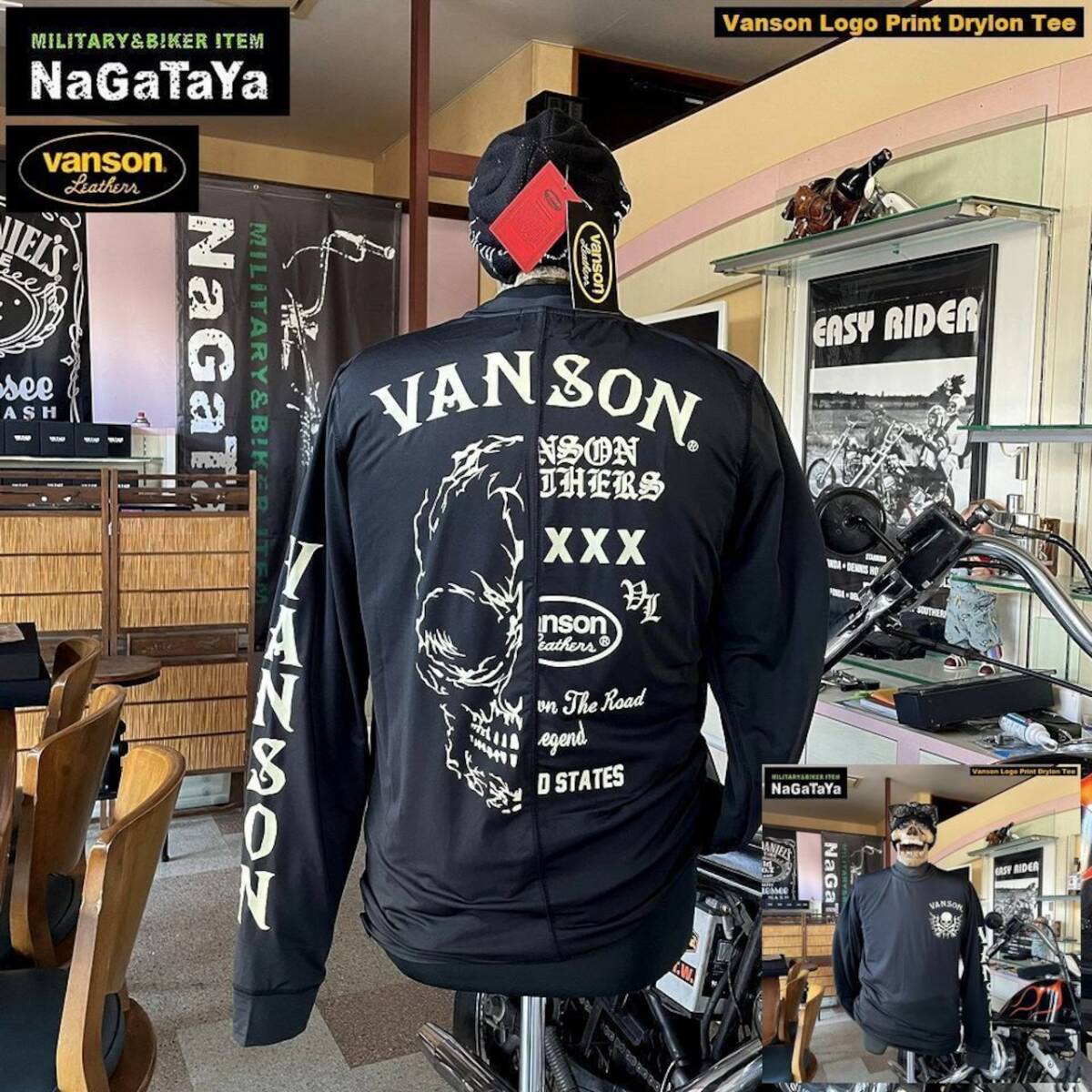 > VANSON バンソン スカル ロゴプリント ドライロンTシャツ タイトシルエット Lサイズ ブラック 黒 メンズ NVLT-2505