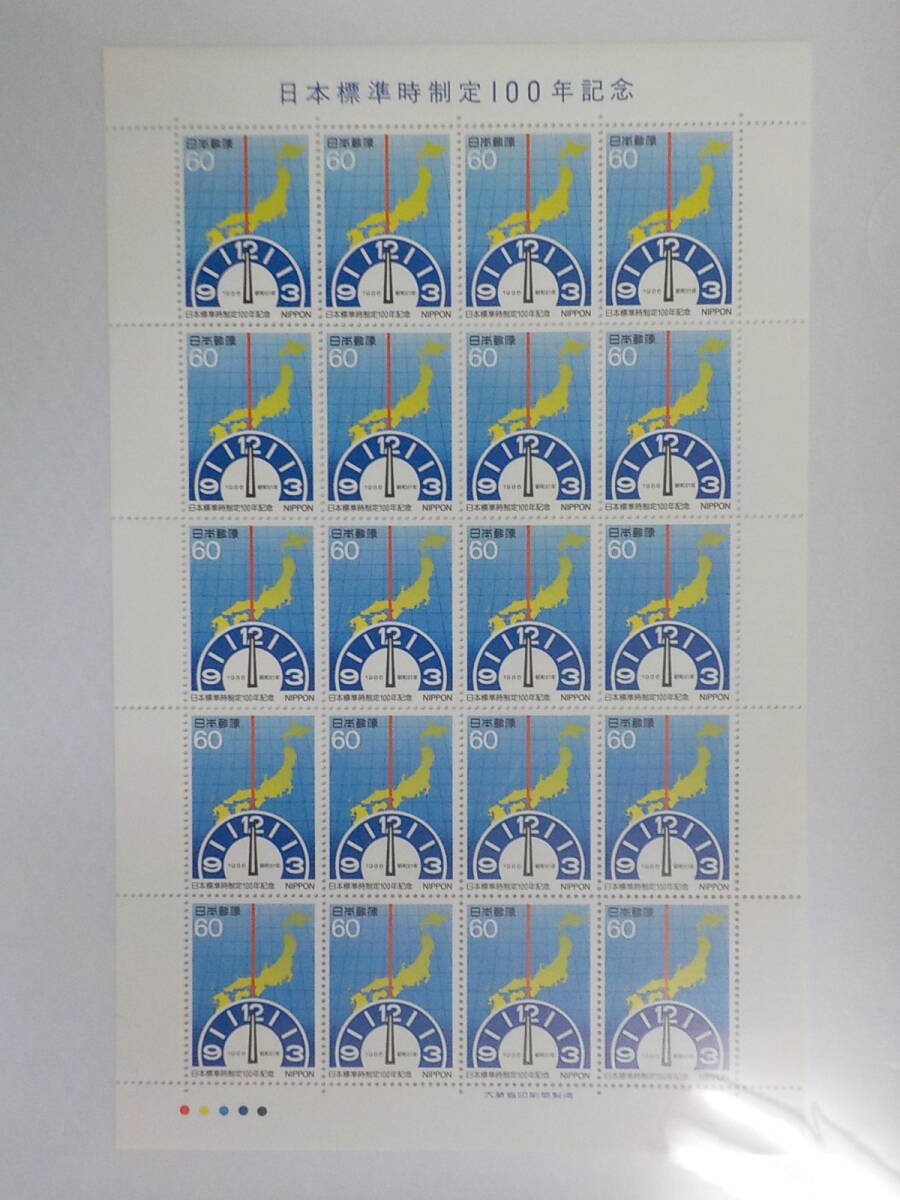 - 日本標準時制定 100年記念 1968年 子午線と時計 / 60円切手シート 未使用