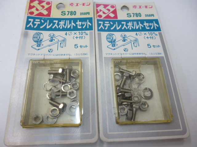 - エーモン S780 ステンレスボルトセット 4x10mm 5セット 2パック ボルト ナット 平ワッシャー スプリングワッシャー 定形外可