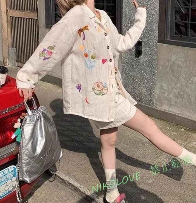 - 新品 カジュアル 前開け カーディガン 豪華刺花柄 トップス チュニック フリーサイズ 大人可愛 ナチュラル 麻100% リネン サラサラ