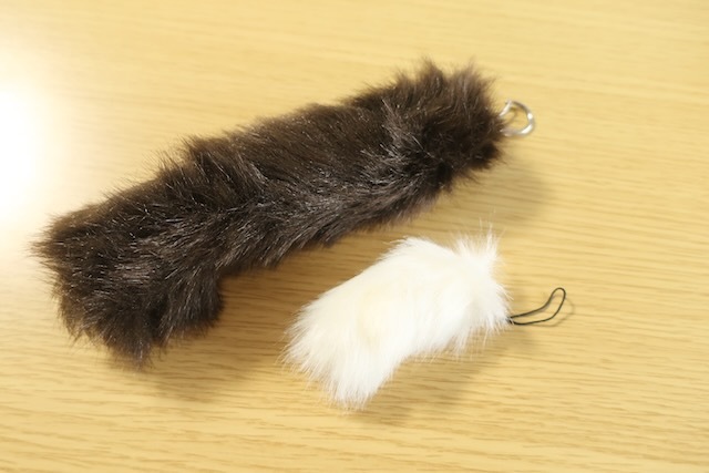 - しっぽキーホルダー★ダークブラウン(大)&ホワイト・キーチェーン(小)2個で!未使用