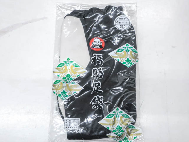 - 《古美術京松》【着物】 和装小物 未使用品 男物 男 福助足袋 足袋 黒朱子 4枚コハゼ 25cm r7w03-913
