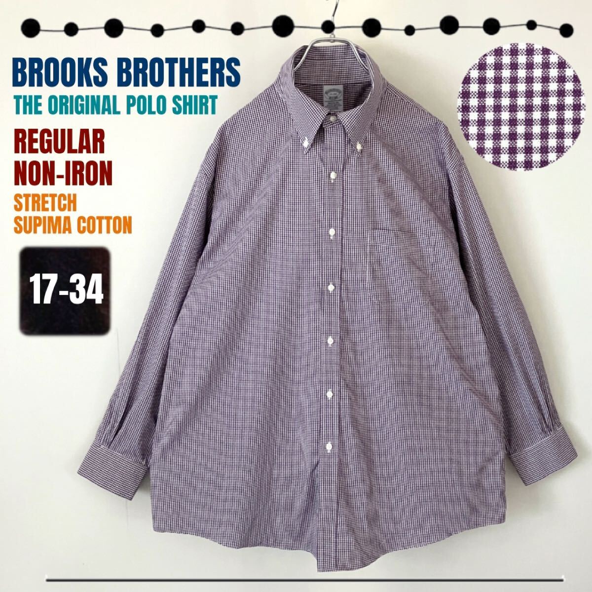- ブルックスブラザーズ /BROOKS BROTHERS★ノンアイロン/ストレッチスーピマ綿/ポロカラーOXシャツ★レギュラー★ギンガムチェック★17-34