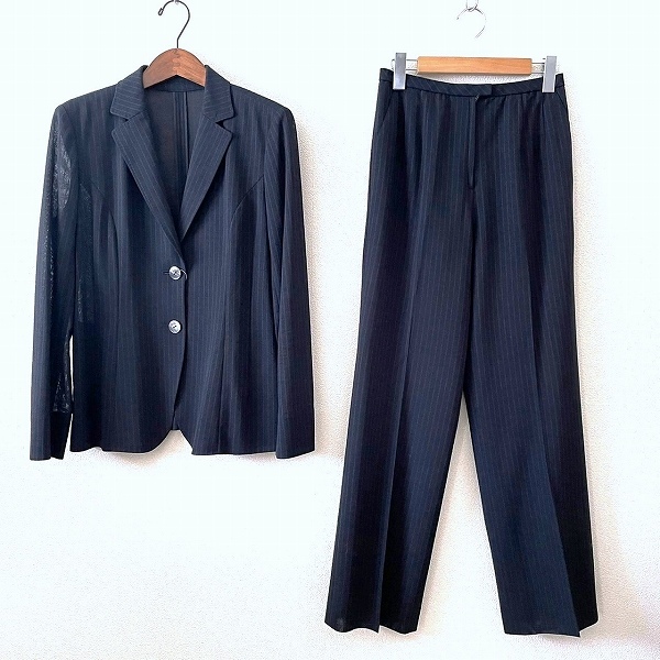- #snc レリアン Leilian パンツスーツ 9 濃紺 センタープレス 薄手 サマーウール ストライプ レディース [937759]
