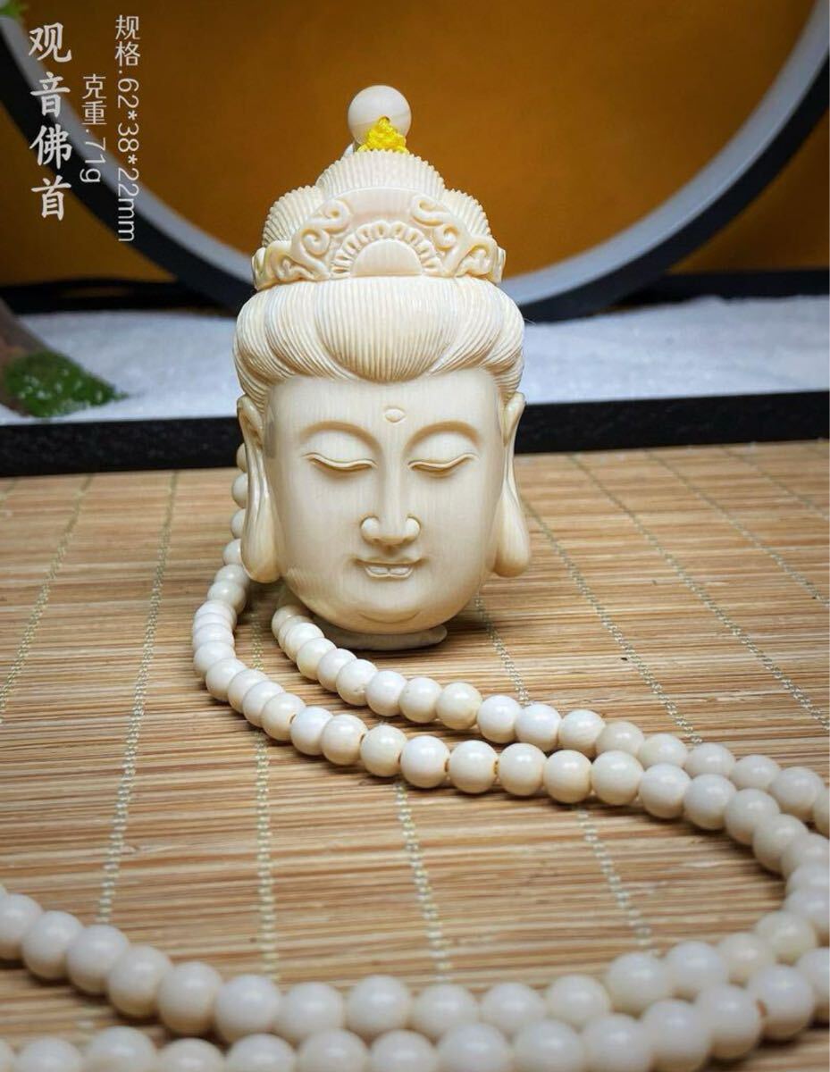 - 天然マンモス牙美しい手作り彫刻観音仏首 ネックレス