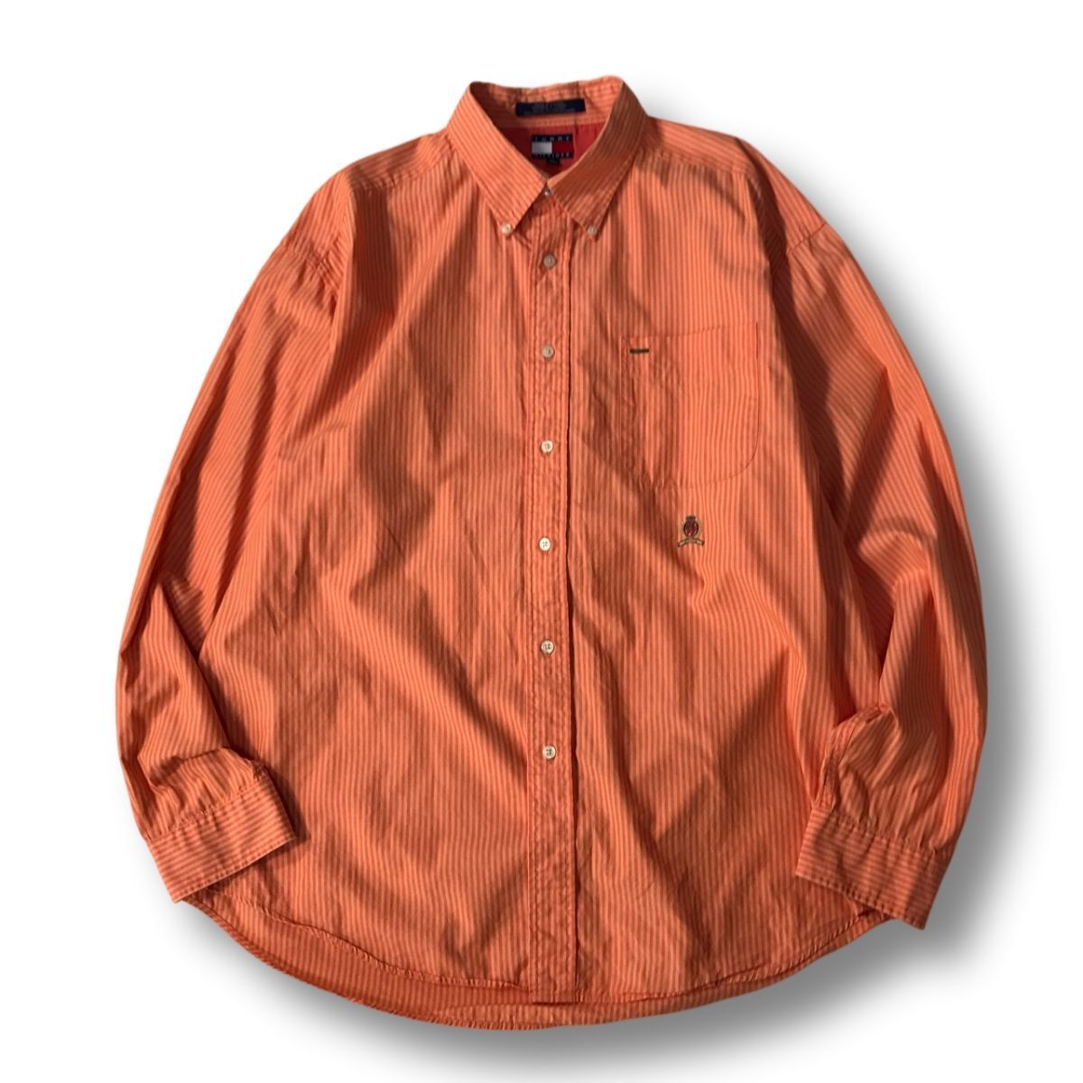 - 《オススメ◎》TOMMY HILFIGER トミーヒルフィガー★ストライプ*ワンポイント*ボタンダウンシャツ*オレンジ*サイズXL(MA8084)◆S60