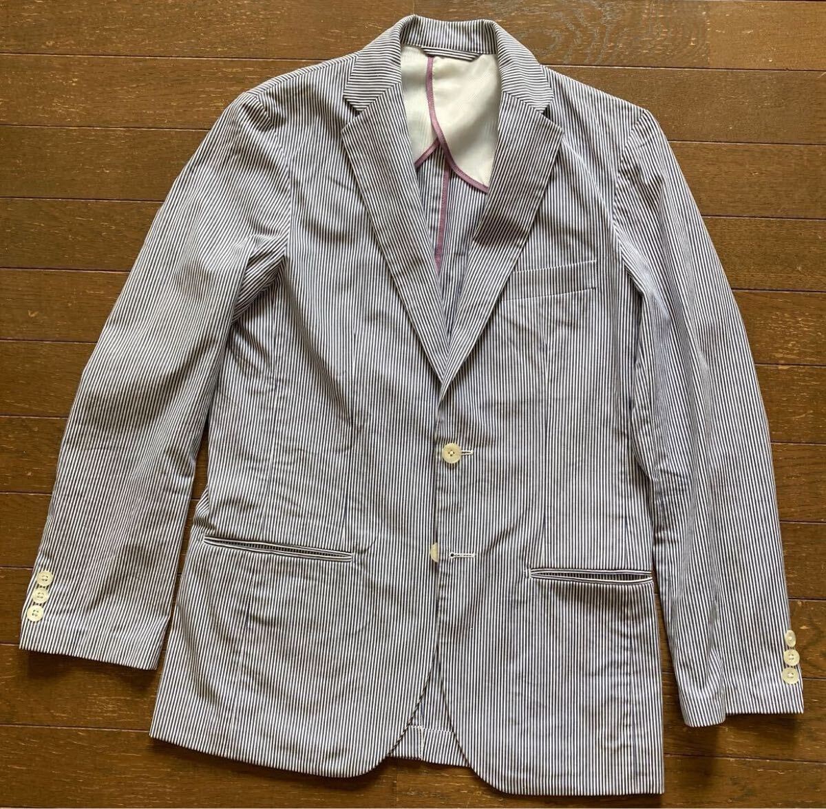 > 【スキャッティー(SCHIATTI) 春夏用メンズ・シアサッカー・ジャケット】 サイズ:44(日本サイズ:スリムなS程度)/背抜き
