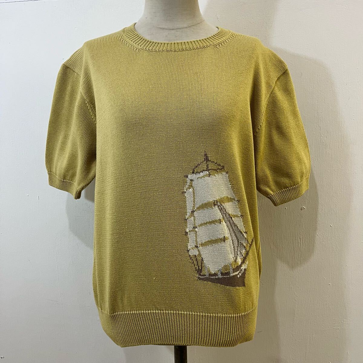 > VINTAGE BURBERRYS 半袖ニット コットンニット ニットセーター 帆船柄 イエロー 希少 オールドバーバリー【レターパックプラス郵送可】K