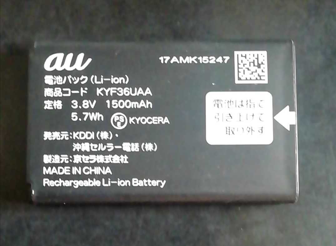 > 【中古】au純正KYF36UAA電池パックバッテリー【充電確認済】対応機種(参考)KYF36/KYF37/KYF38/KYF39/KYF41/KYF42/KYF43