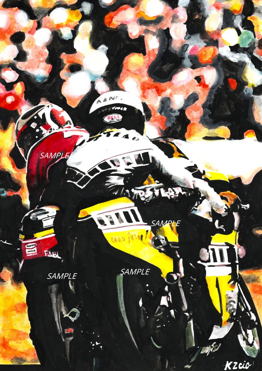 - A4プリントです WGP500 バリーシーンVS.ケニーロバーツ 水彩画 バイクイラスト