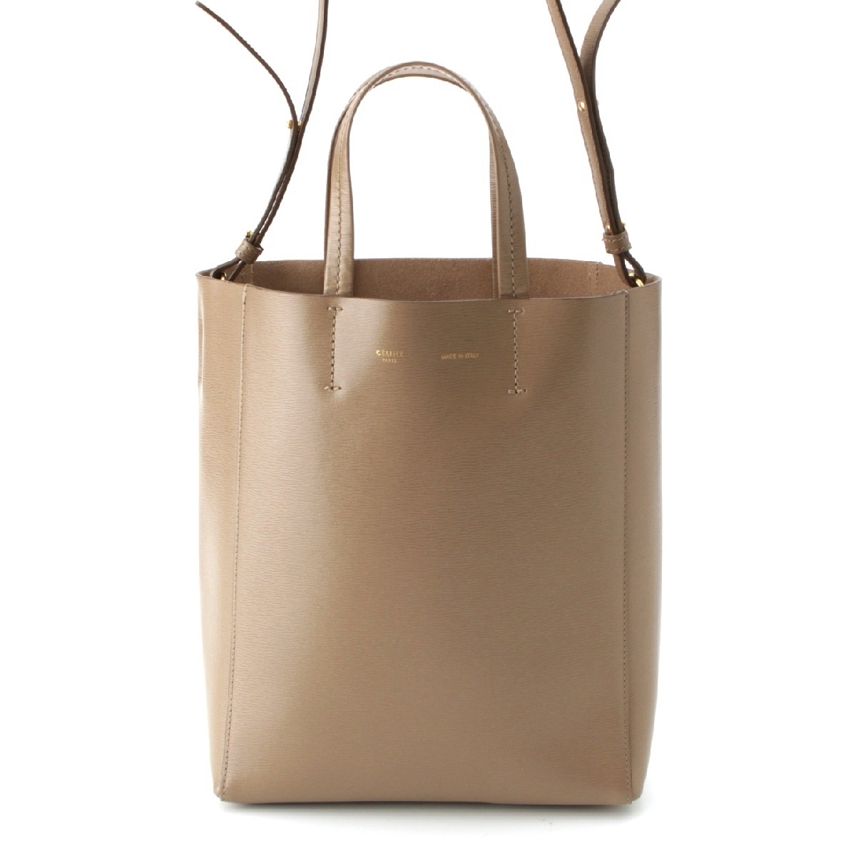 - セリーヌ レザー バーティカルカバ ゴールド金具 ショルダーバッグ ベージュ スモール【中古】