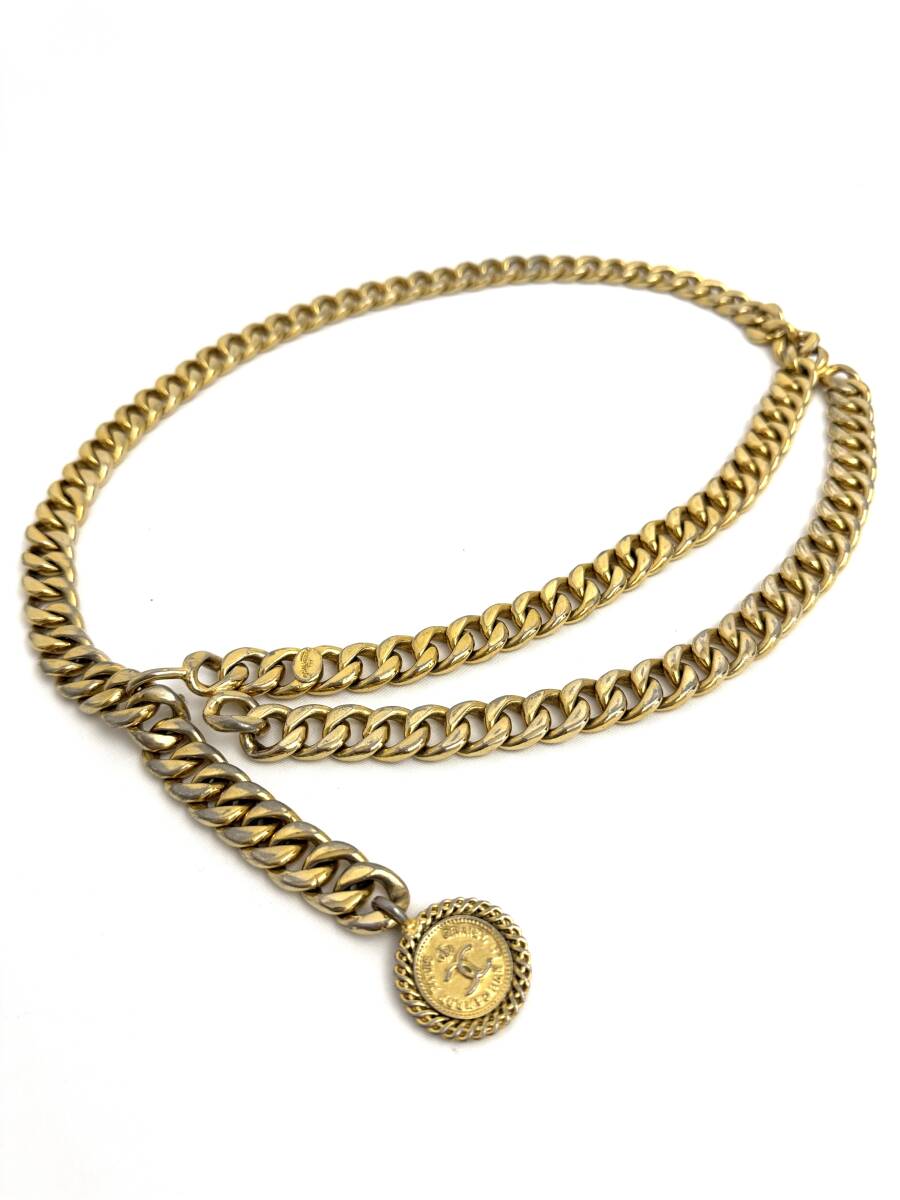 - 7D1302【本物保証】シャネル チェーン ベルト 2連 喜平 大ぶり ゴールド ココマーク カンボン 31 RUE CAMBON vintage CHANEL